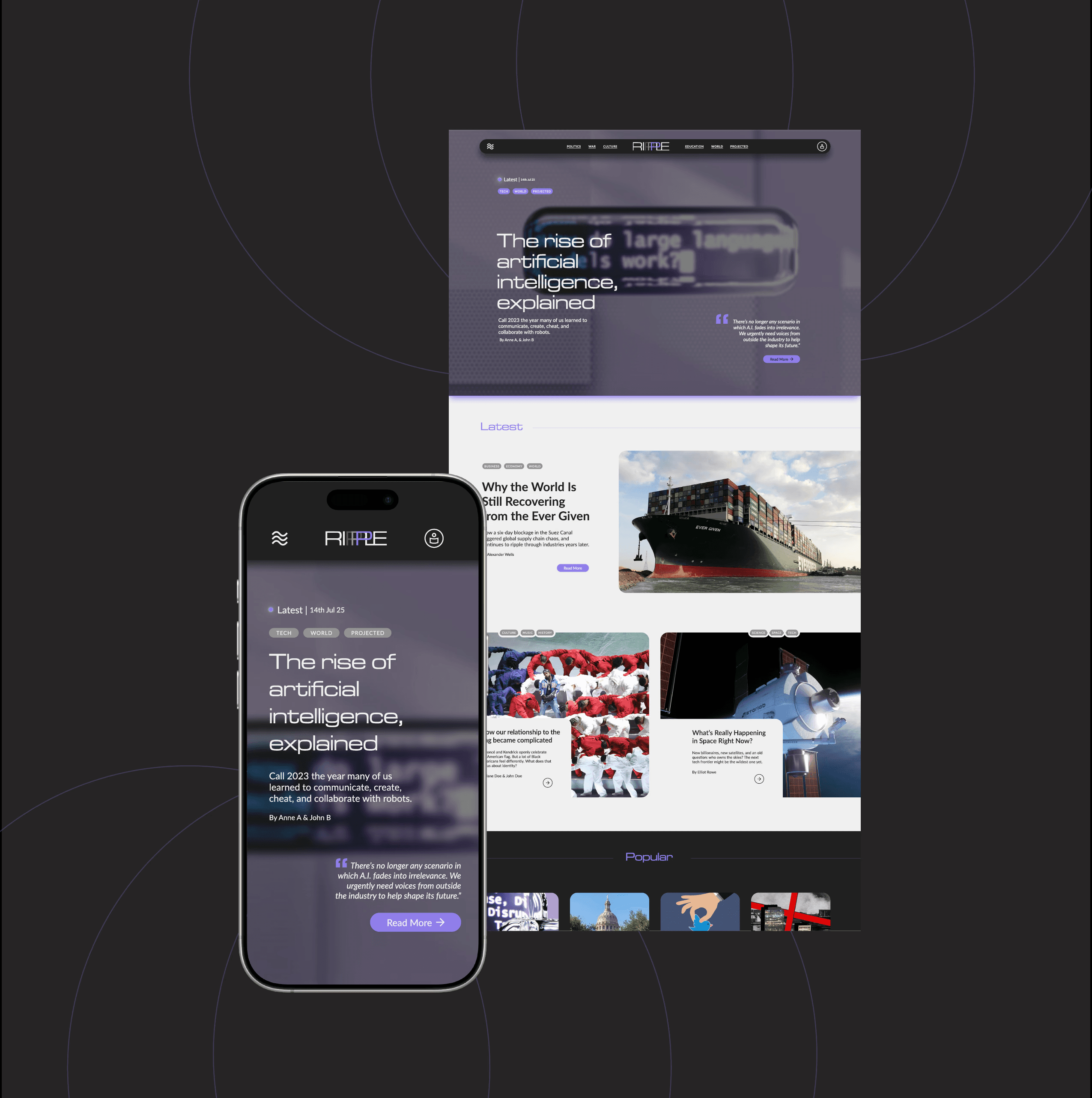 RIPPLE is a responsive, experimental news platform that divides information into section pieces.
