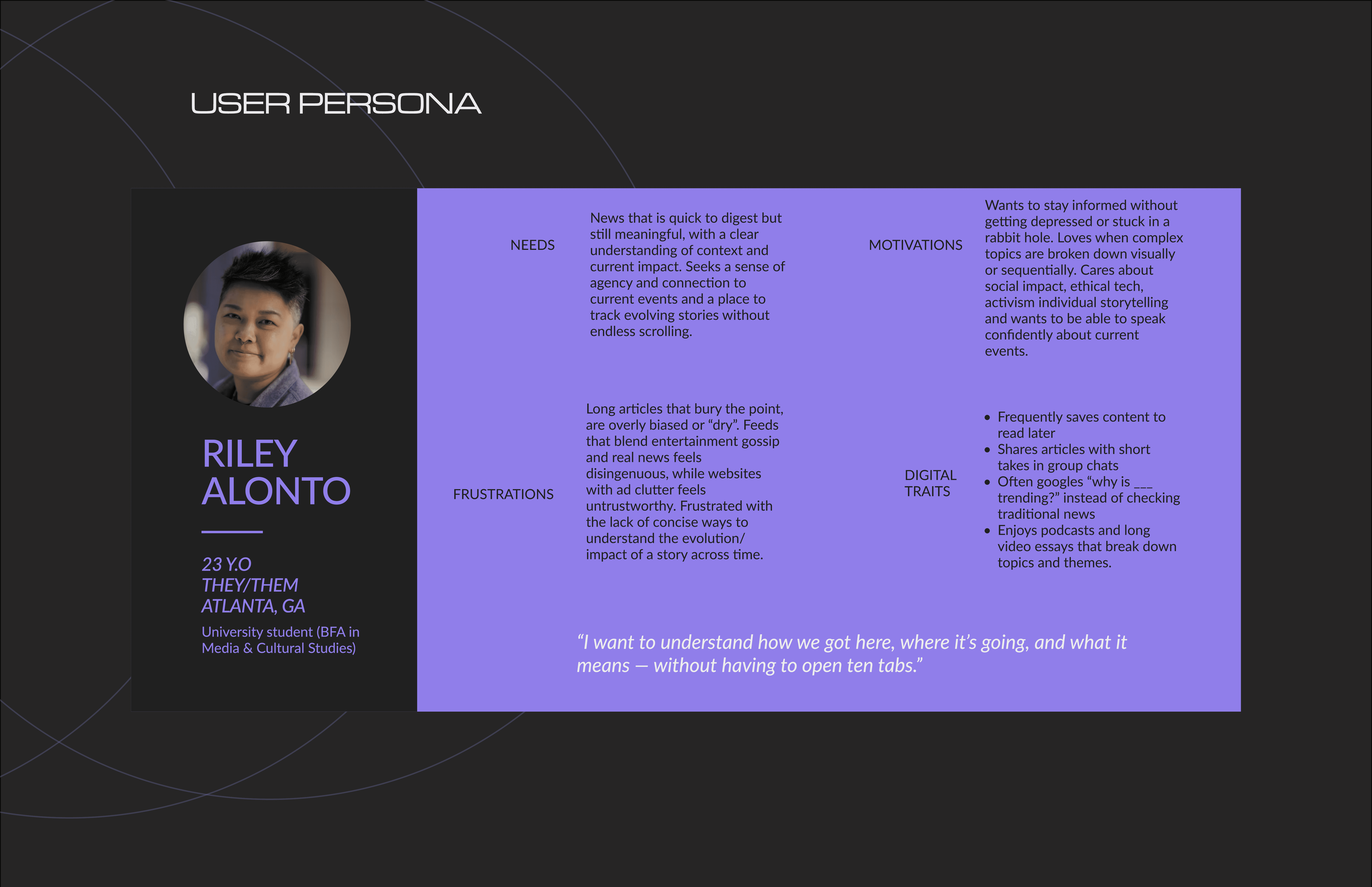 The concept works around the idea of allowing users to understand world-wide events in a unique timeline format.